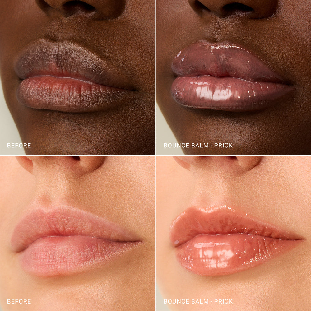 Bounce Balm is our ultra-nourishing lip balm — and your new handbag essential. Now available in NEW shades, Prick and Grind: two effortlessly wearable neutrals.