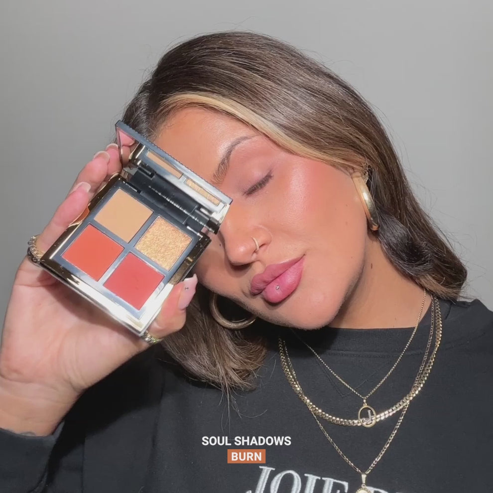 Transform yourself with Soul Shadows. Each palette is curated with four richly pigmented eyeshadows for endless expression and eye looks.