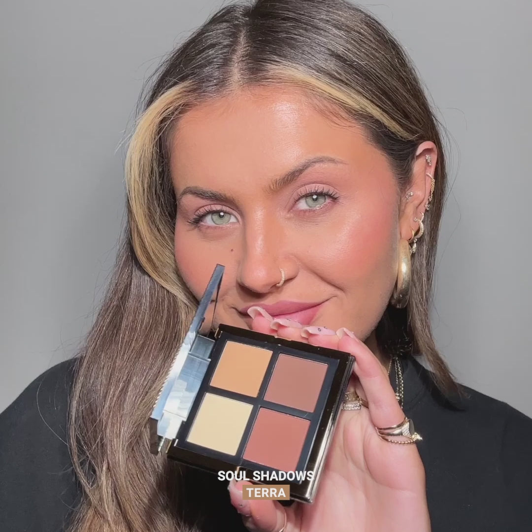 Transform yourself with Soul Shadows. Each palette is curated with four richly pigmented eyeshadows for endless expression and eye looks.