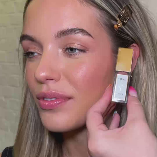 Apply Lip Dew over lips for a lustrous high-shine glow finish or layer over Modern Matte Lipstick and Modern Lip Definer to elevate your lip look. Using VIEVE’s 121 Blush & Bronze Brush, swirl Sunset Blush onto the apples of the cheeks for a natural blush and youthful glow. For a sun-kissed flush of colour, sweep upwards and outwards along your cheekbones and across your nose.
